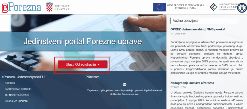 Na početnoj stranici, pod dijelom Usluge, odabirete opciju ‘FiskAplikacija’